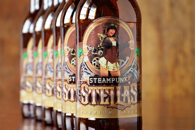 Support: Vinyl adhesiveFor short-term production or, as a prototype such as these, of microbial beer bottles, the BN-20 desktop printer / cutter is the perfect device. You can print with CMYK metallic ink and automatically die-cut in one process, all from the desktop.